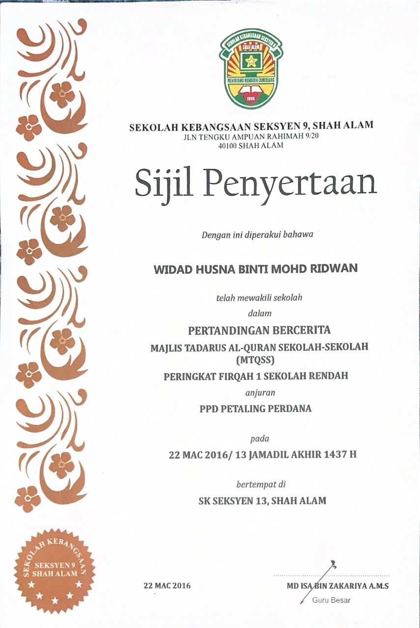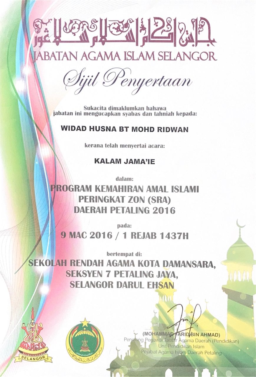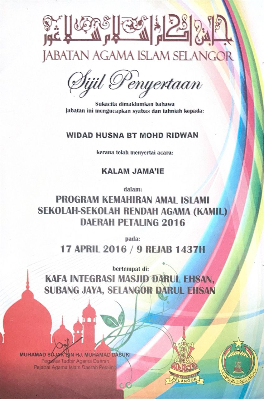 | 10 | Sijil Pencapaian: Johan | Kalam Jamaie: Program Kemahiran Amal Islami Sekolah-Sekolah Rendah Agama (KAMIL) Daerah Petaling | 2016 | View Full Size |