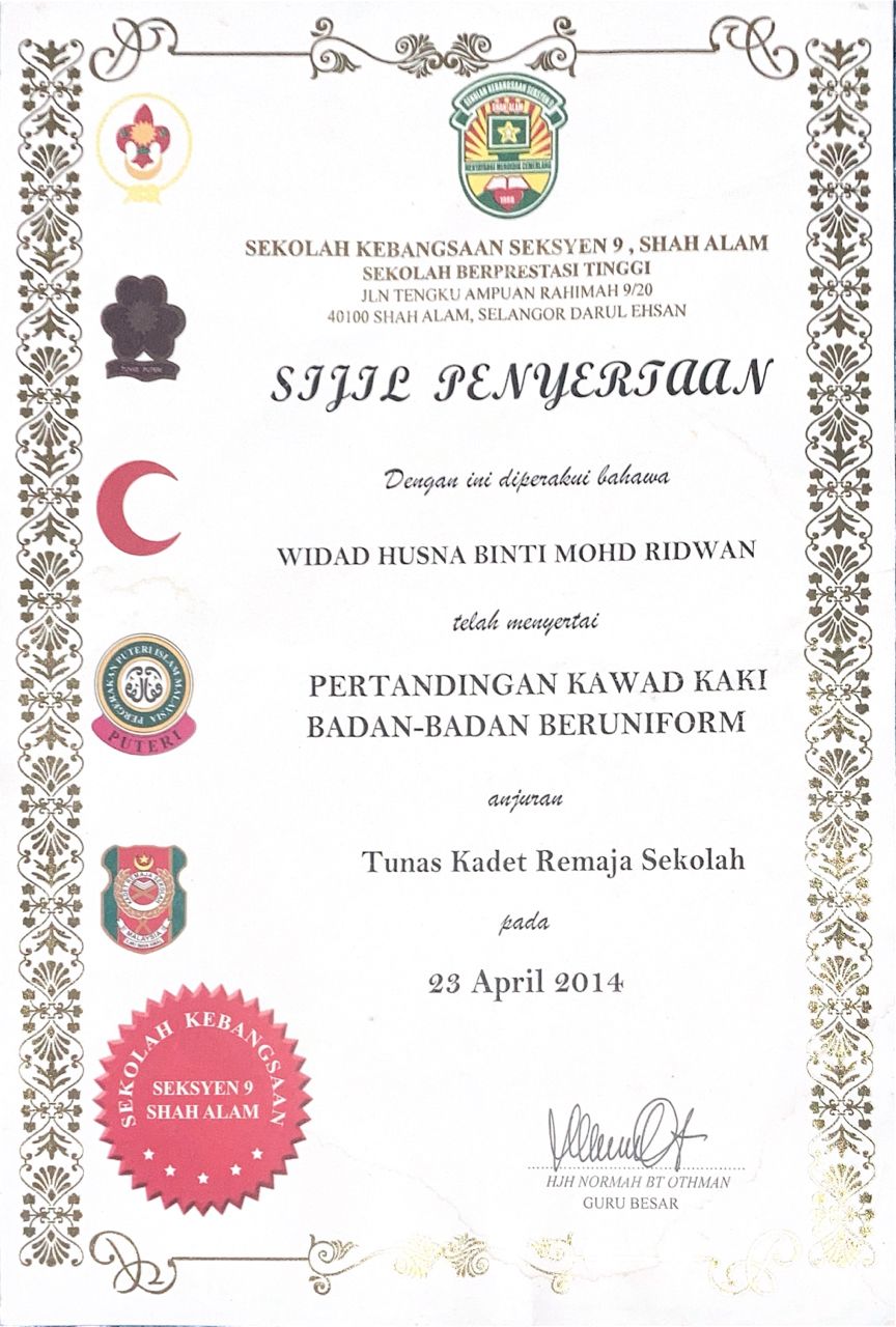 | 2 | Sijil Penyertaan | Pertandingan Kawad Kaki Badan-Badan Beruniform | 2014 | View Full Size |