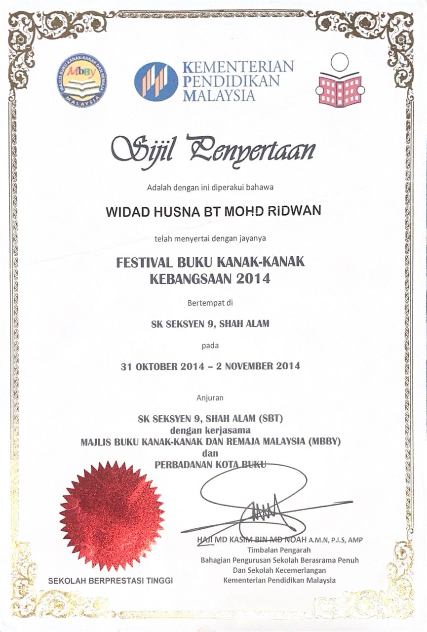 | 3 | Sijil Penyertaan | Festival Buku Kanak-Kanak Kebangsaan 2014 | 2014 | View Full Size |