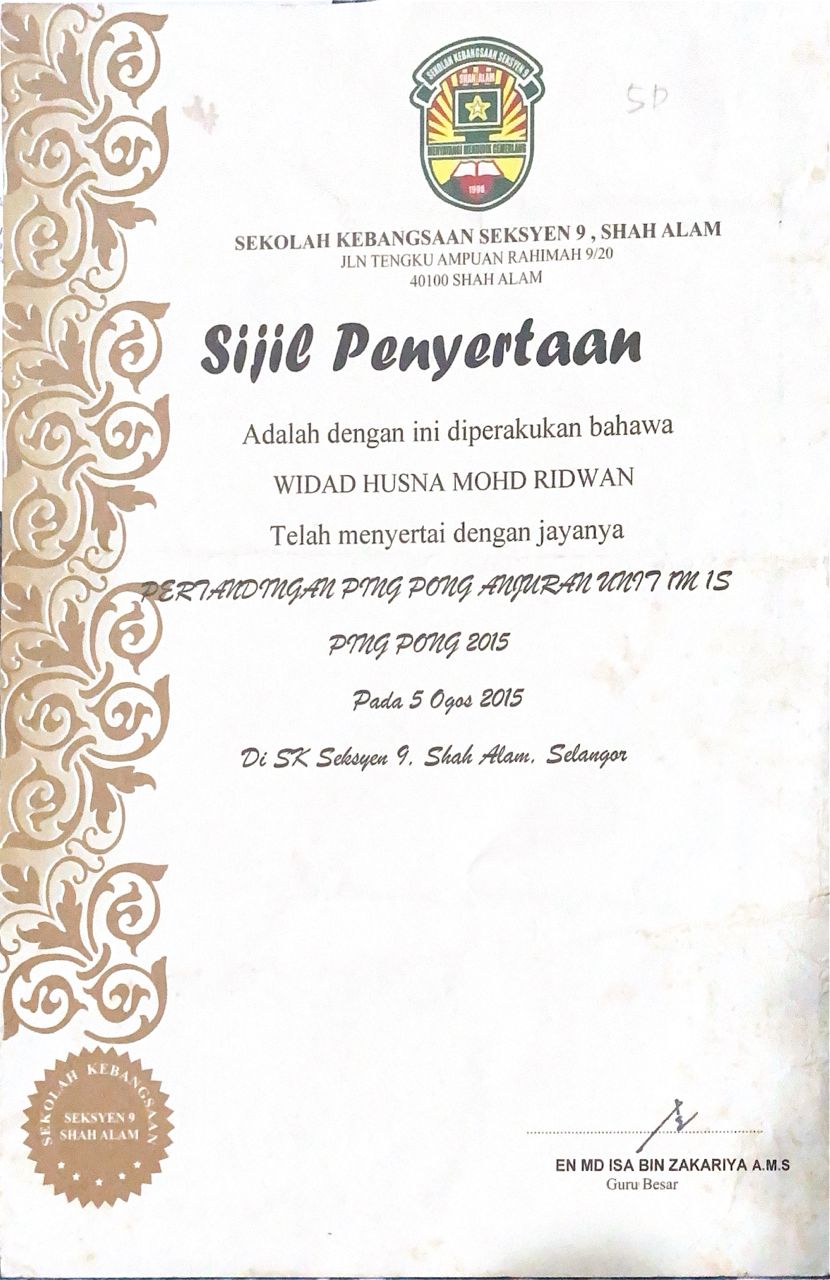 | 9 | Sijil Pencapaian: Naib Johan | Pertandingan Ping Pong Anjuran Unit IM15 Ping Pong 2015 | 2015 | View Full Size |