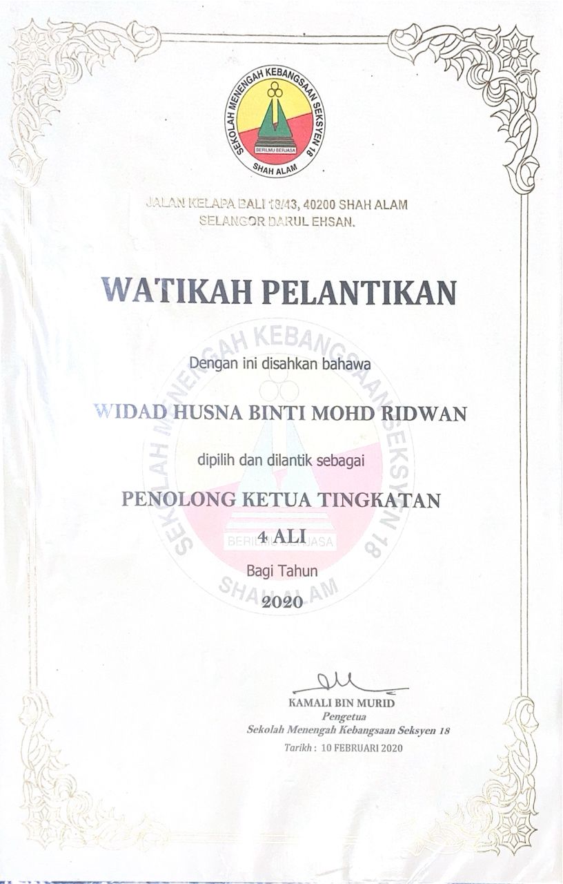 | 25 | Watikah Pelantikan | Pelantikan Penolong Ketua Kelas 4 Ali | 2020 | View Full Size |